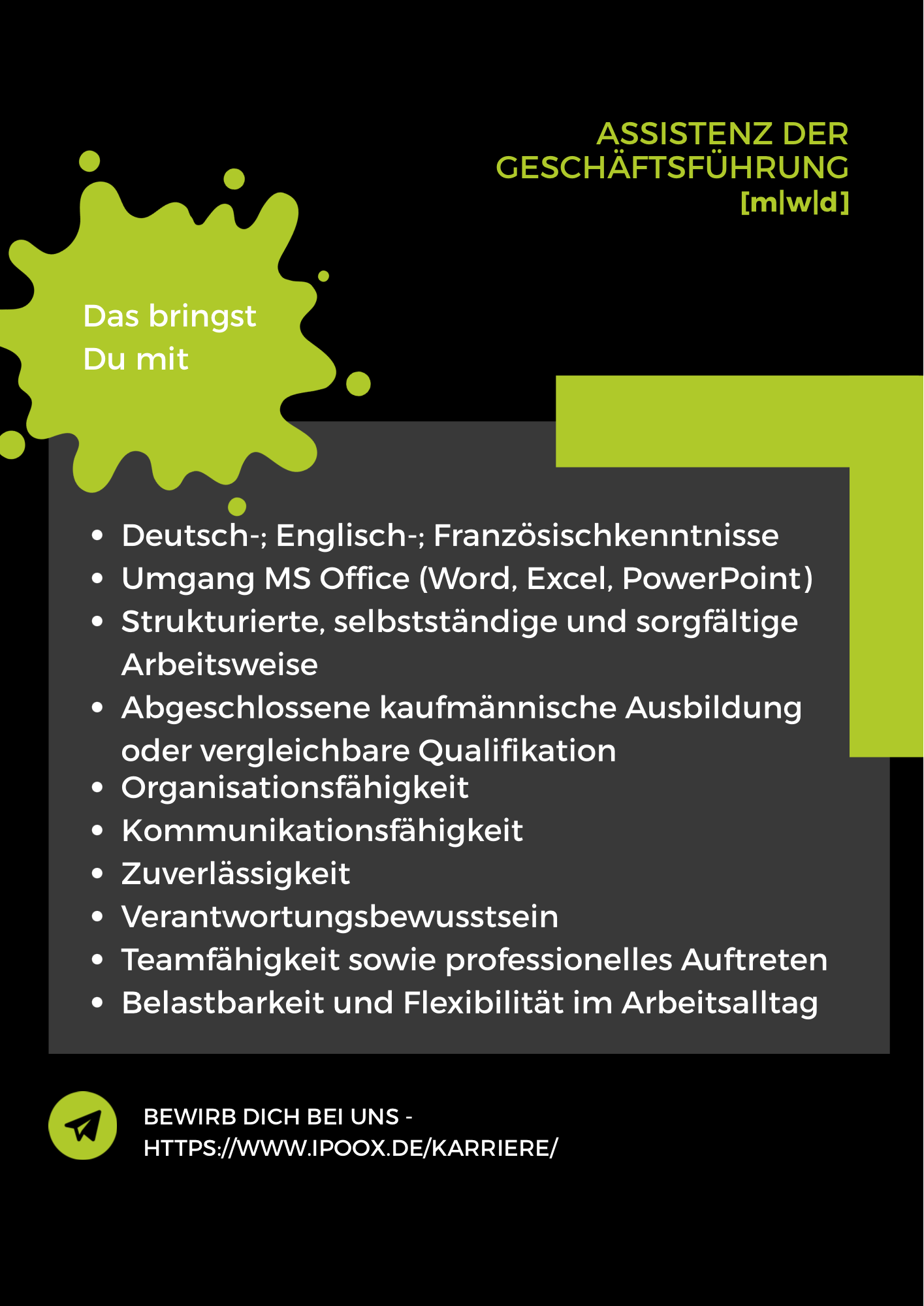 Deine Initiativbewerbung richtest du einfach mit Anschreiben und Lebenslauf an hr@ipoox-group.com.